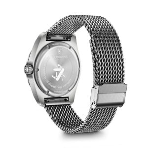 旧シリーズ「フィールドフォース」の後継として登場したフィールドウォッチ「スイスアーミー」。視認性の良い大きなアラビアインデックス、しっかりと夜光を施した太い針など、実用重視のデザインは踏襲しながら新たに316Lステンレスの鍛造ケースが採用されました。仕上げなどの質感も格段に向上し、厚みのあるメッシュブレスも相まって高級感のあるモデルに仕上がっています。防水は10気圧とイノックスなどに比べれば控えめながら、ISO認定の耐衝撃と耐磁性が与えられ信頼性もUP。ビクトリノックスの中ではエントリーモデルとされていますが、それがこのスペックというのは驚きです。
