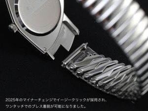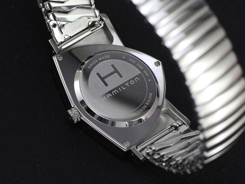 左右非対称の独創的なデザイン。ハミルトンの定番人気モデル、ベンチュラに待望のフレックスブレス(蛇腹バンド)モデルが登場です!このベンチュラ×フレックスブレスは元々ハミルトンのオリジナルではなく、キング・オブ・ロックンロール「エルヴィス・プレスリー」が自身のベンチュラを好みでカスタマイズしたのが始まりとか。過去に限定モデルでは存在しましたが、今回はレギュラーモデルとしてのリリースです!