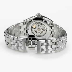 機械式時計の心臓(ハート)であるムーヴメントの動きが文字盤側からも楽しめるジャズマスターの人気シリーズ「オープンハート」。角度によりキラキラと輝く文字盤はアベンチュリンと呼ばれる天然石をイメージした仕上げです。まるで星がまたたく夜空のような深いブルーのダイヤルが、さらなる高級感を感じさせてくれますね。文字盤の輝きがしっかりと感じられるこの42mmサイズに加え、男女ともに楽しめる36mmサイズもリリースされています。ペアユースもオススメですよ。