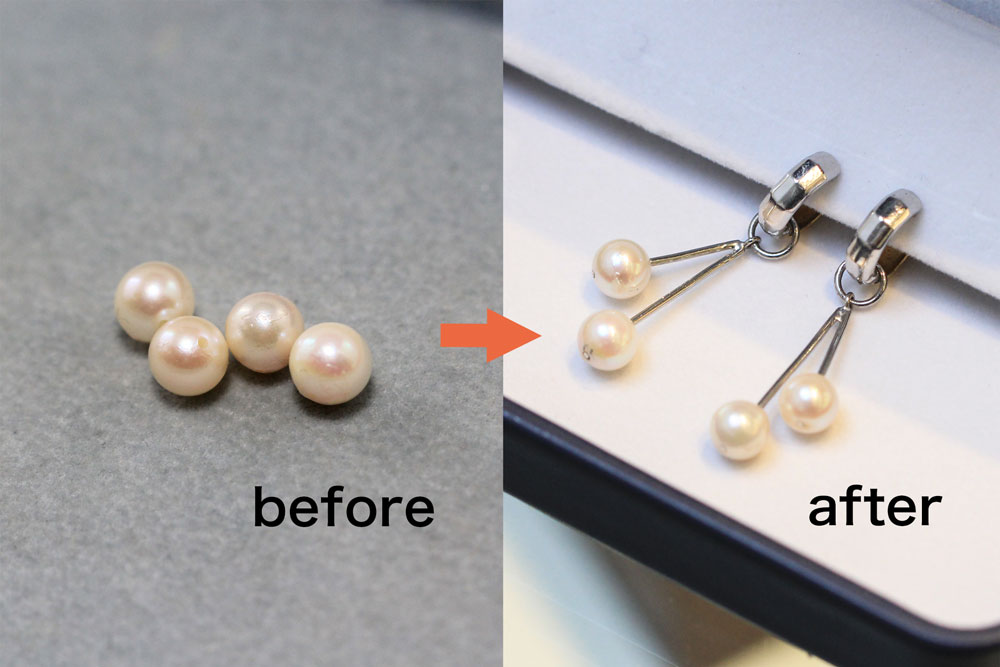 昔もらった婚約指輪をシンプルなペンダントに。パールのネックレスをピアスやイヤリングに。などなど、既成デザインを使ったリーズナブルなリフォームから完全オリジナルデザインまで、ご予算・ご要望に応じて各種ご提案可能です。お見積もりは無料ですのでお気軽にご相談くださいませ。